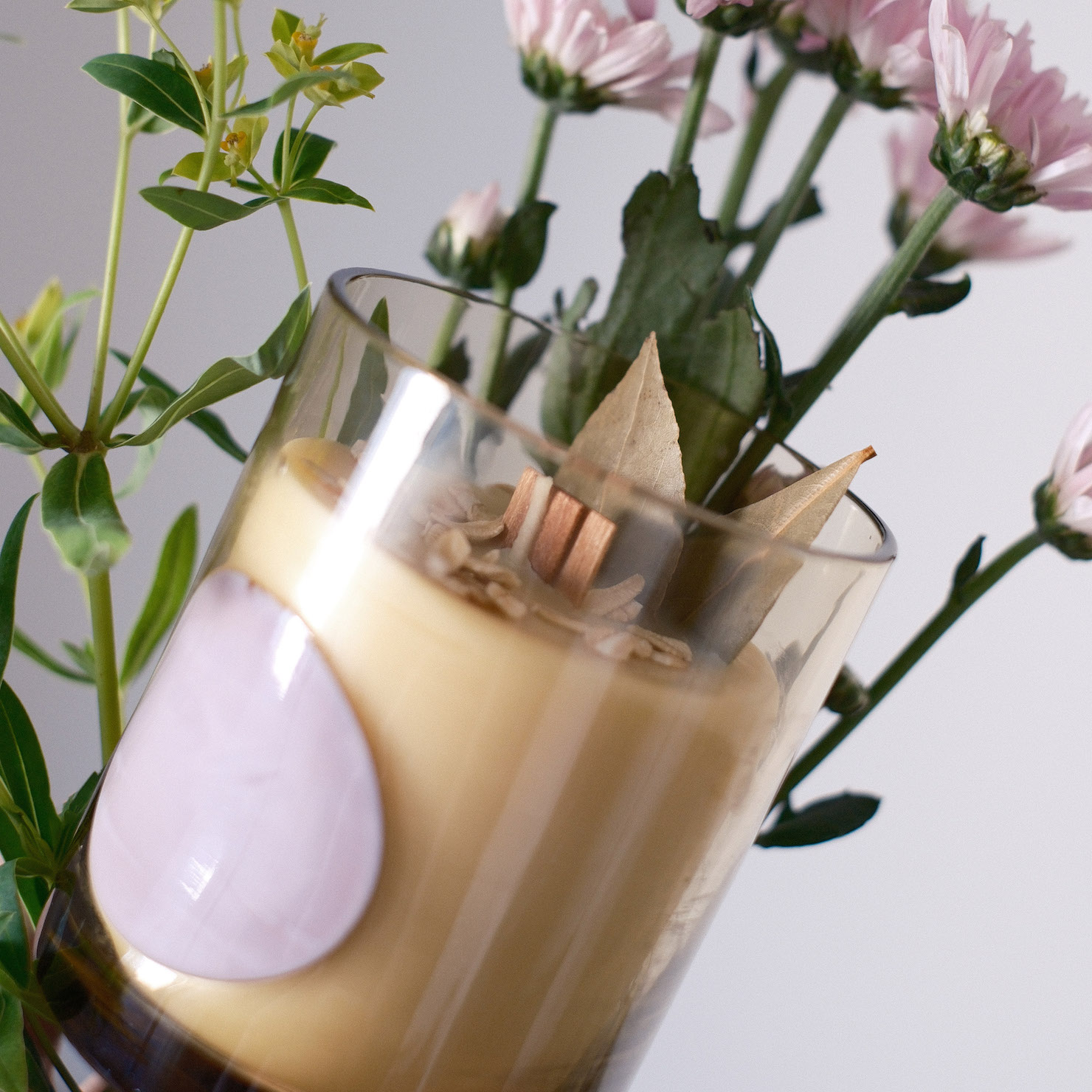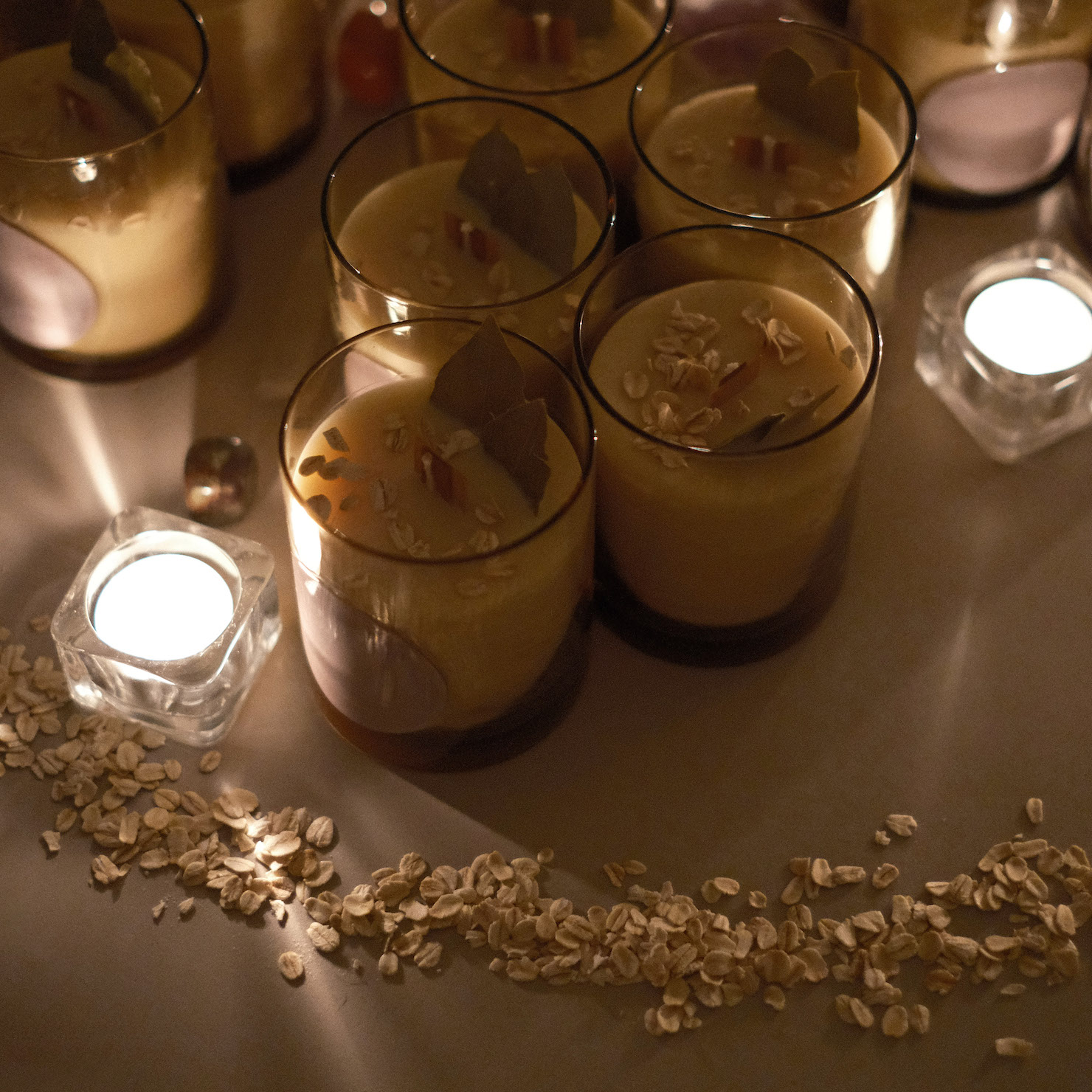 此時大地瀰漫著「豐收、水到渠成」的能量,是年度能量的高峰、屬於這個時節的陰性能量圍繞著我們,在溫柔的自我接納、舒服的節奏下,萬事萬物同時一起達到飽盈圓融的豐盛能量,而我們在這個時間點,將大地如此美好的能量保存起來,放進這顆蠟燭。