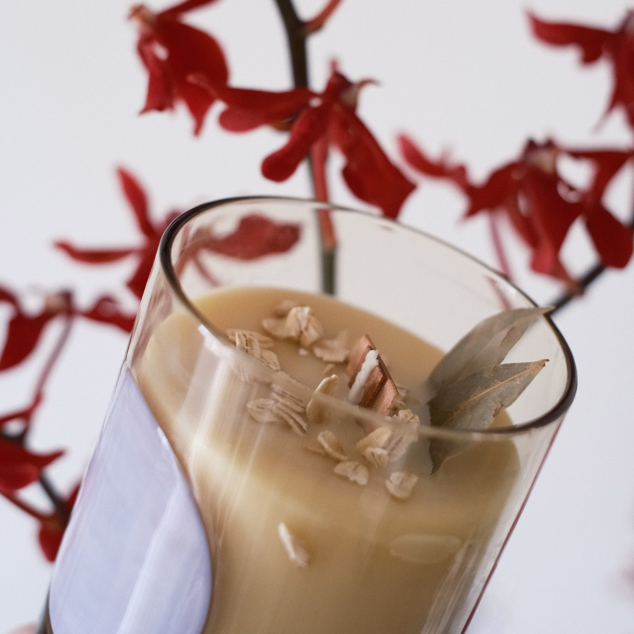 蜂蠟、大豆蠟、天然精油、乾燥月桂葉、燕麥