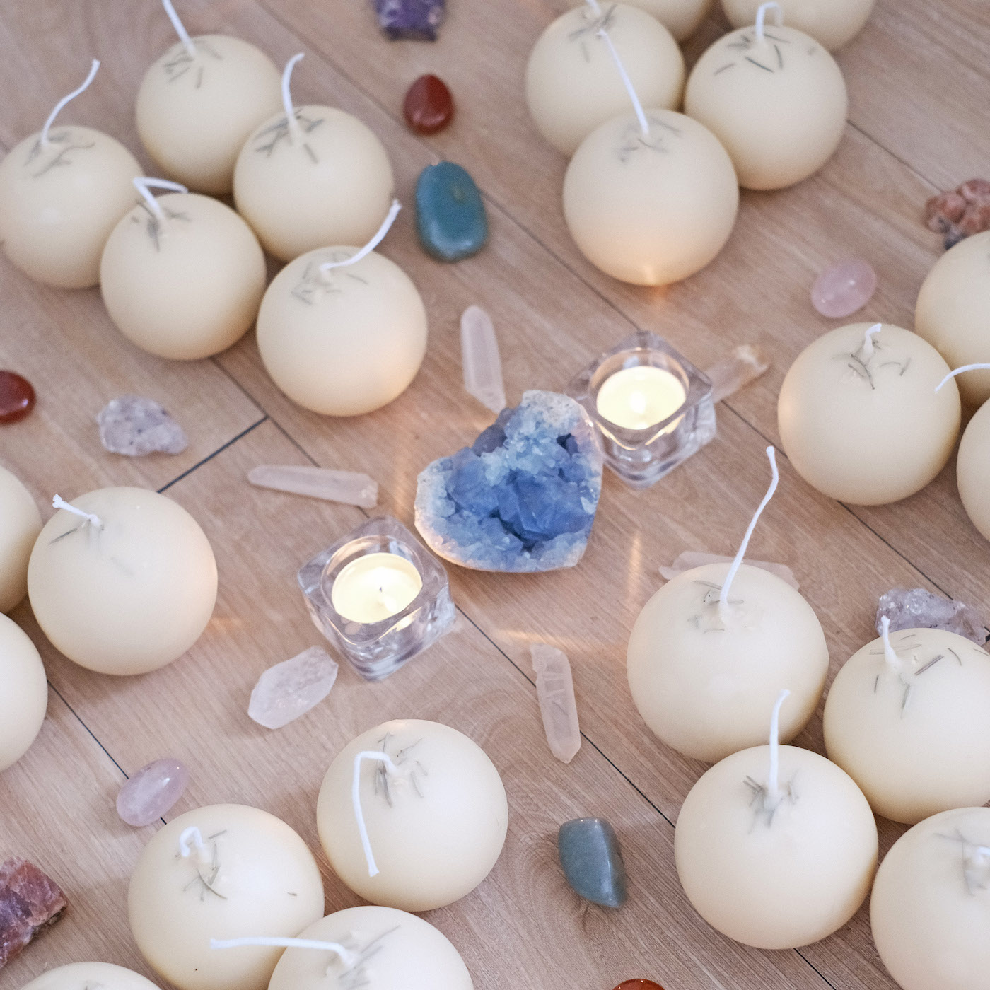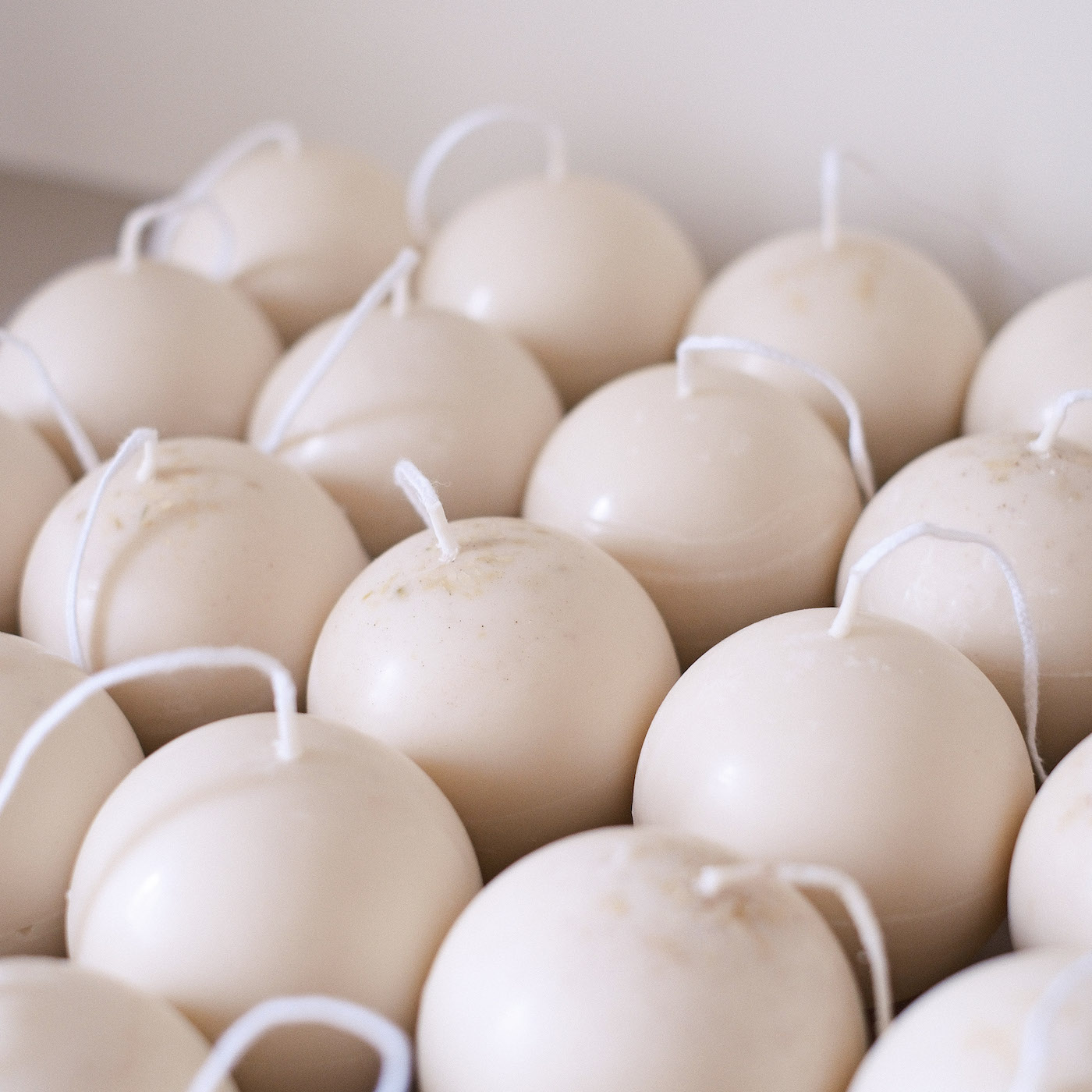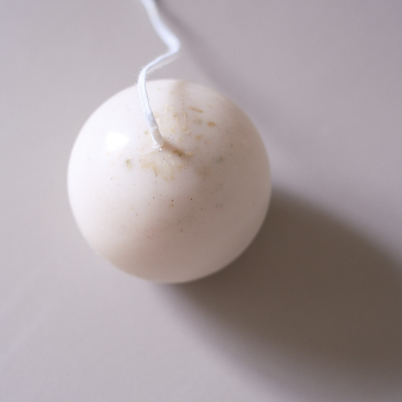 這次被指定要製作的蠟燭形體,就是這樣圓滾滾胖嘟嘟的球型裸燭,在製作後期,也特別使用了淨化長燭特有的沾蠟手法,這樣繁瑣的製作過程,能確保能量被完整一層一層的封存起來。同時利用了外層與內餡(?) 蠟液的融點差異,讓它在點燃時,不會只是單純的消融,而是能隨著火光流轉,在球體內部透出朦朧而溫暖的光亮,創造出宛如小夜燈般的療癒風景。
