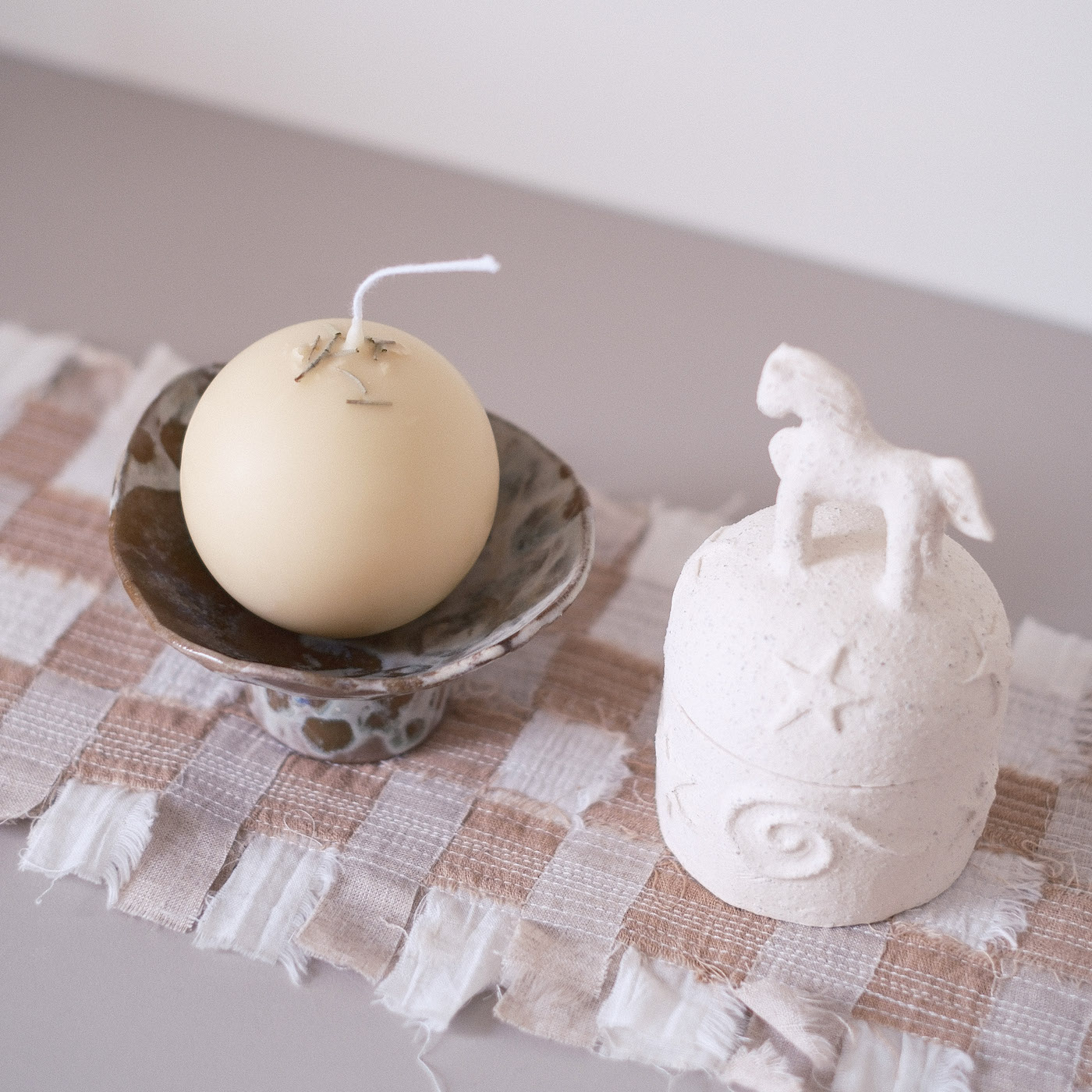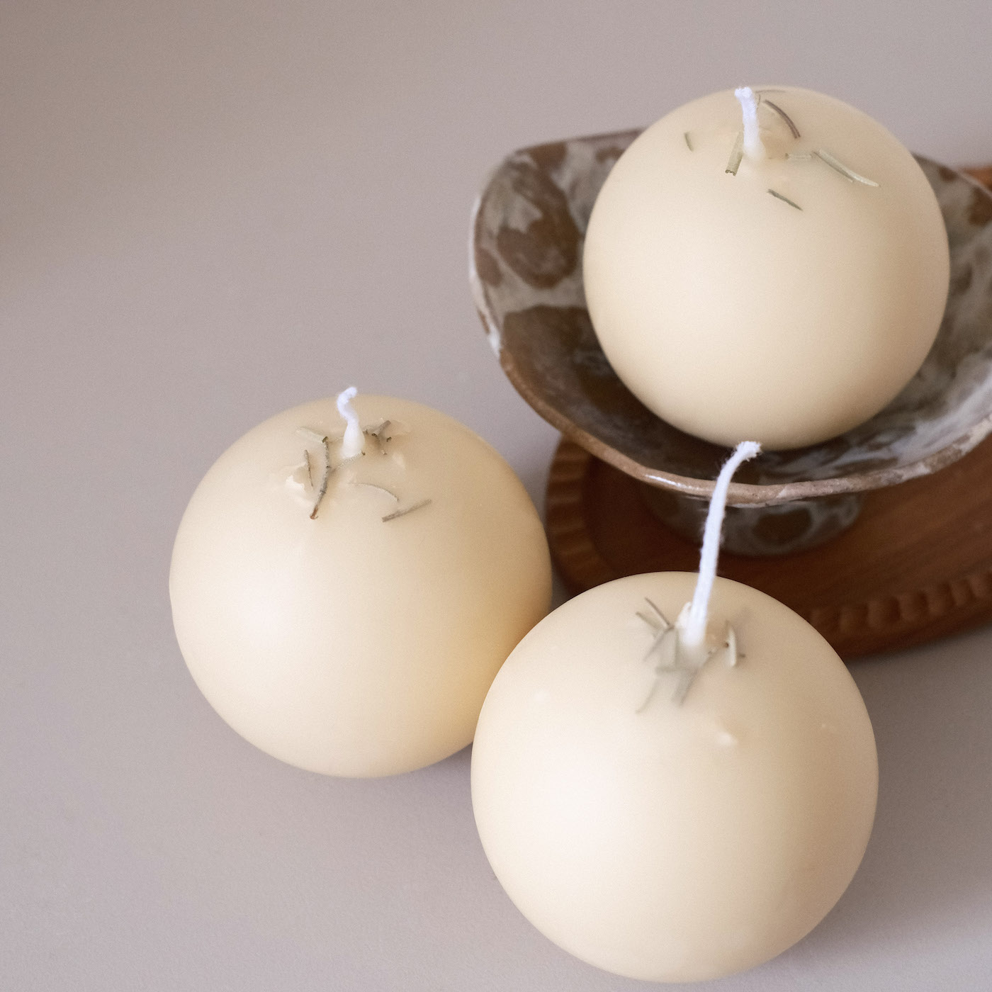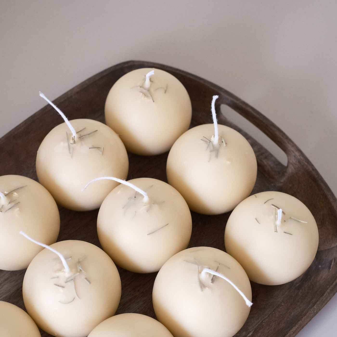 這次被指定要製作的蠟燭形體,就是這樣圓滾滾胖嘟嘟的球型裸燭,在製作後期,也特別使用了淨化長燭特有的沾蠟手法,這樣繁瑣的製作過程,能確保能量被完整一層一層的封存起來。同時利用了外層與內餡(?) 蠟液的融點差異,讓它在點燃時,不會只是單純的消融,而是能隨著火光流轉,在球體內部透出朦朧而溫暖的光亮,創造出宛如小夜燈般的療癒風景。